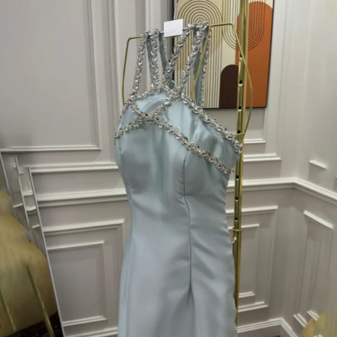 Make a splash down the aisle in the Annaliese—a shimmering mermaid gown that's pure magic. Sparkling crystal embellishments catch the light with every step, while the sleek silhouette features a chic straight neckline and sculpted shoulders. The fitted skirt flows to the floor with an elegant back slit for movement. Includes matching underwear so you're ready to say "I do" the moment you slip it on.