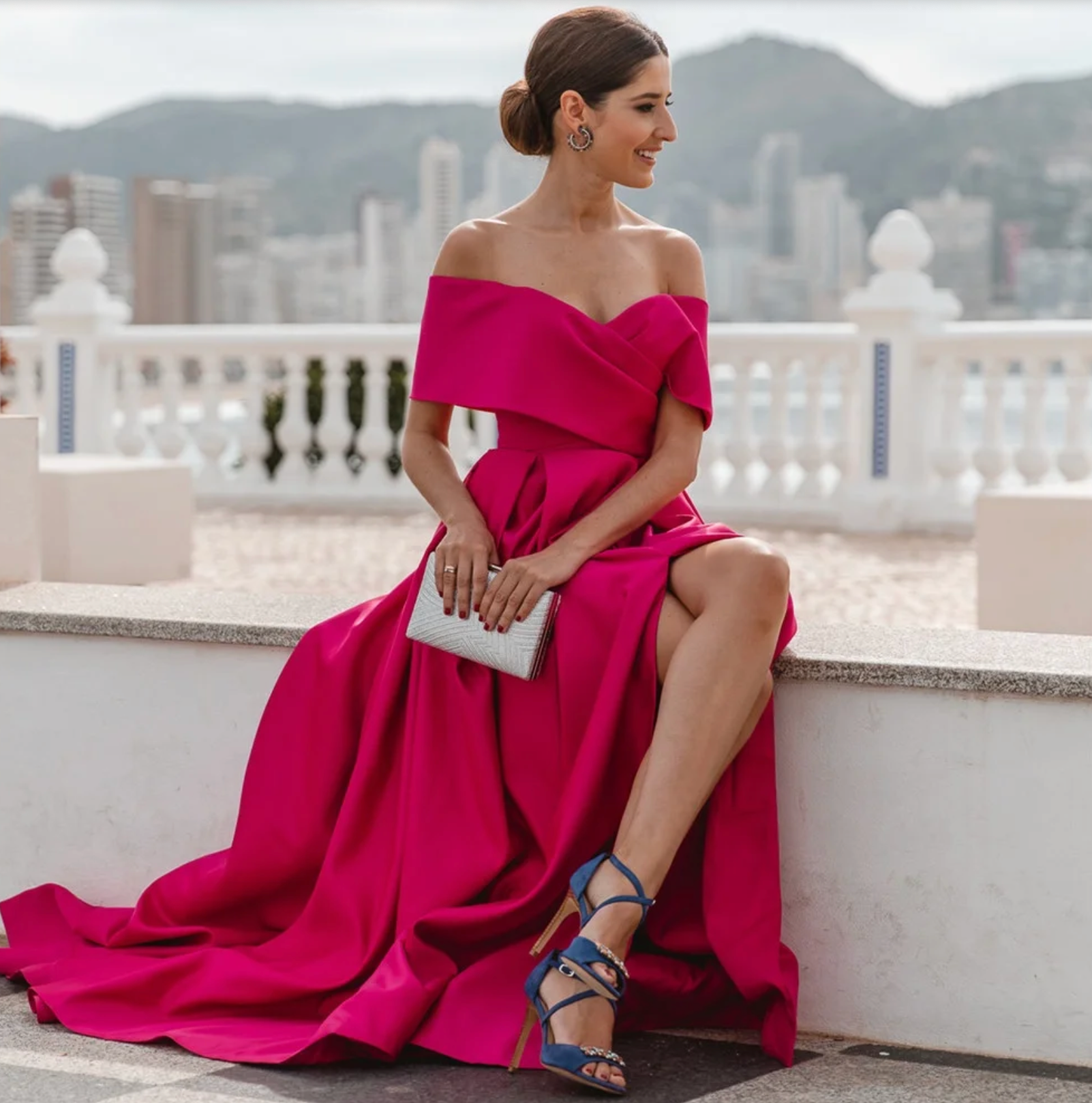 Step into the spotlight with the Cortez Gown, a daring blend of elegance and modern flair. This custom-designed A-line dress features a striking off-shoulder neckline that boldly frames your shoulders. A sleek side slit adds a provocative edge to your movement.