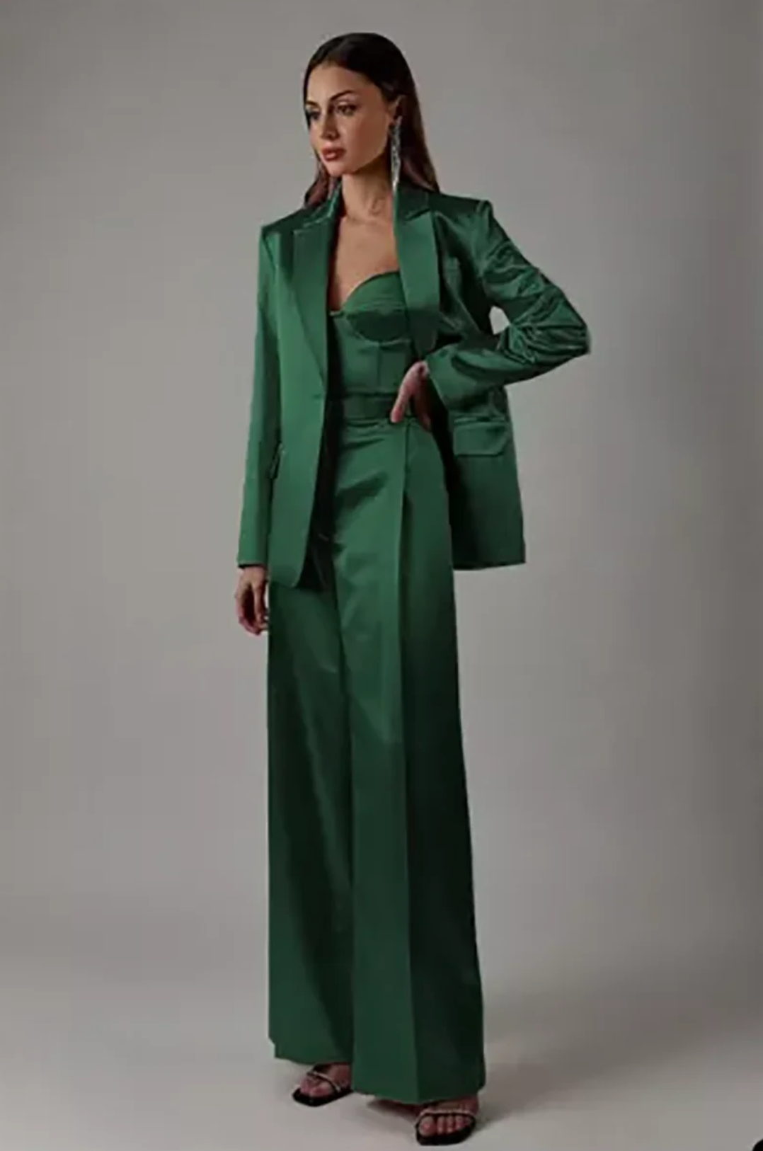Dominate the room in our Dante Suit Set – a rebellious take on power dressing that refuses to play by the rules. This audacious set combines a razor-sharp blazer and unapologetically wide-leg, high-waisted pants crafted from sumptuous silk.