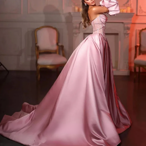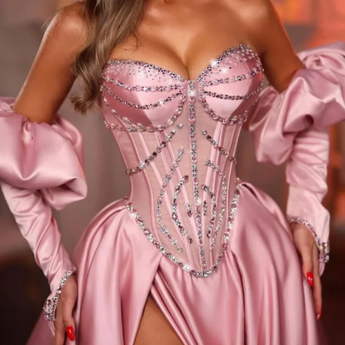 Dare to make an entrance in this stunning Fernandina gown that commands attention. Crafted from luxurious crystal-embellished satin, this gown features elegant sleeves and a daring front split that balances sophistication with bold style. Perfect for prom, formal events, or any special occasion where you want to stand out. The customizable design ensures a perfect fit tailored to your vision. Radiate confidence and glamour in a dress as unforgettable as you are.