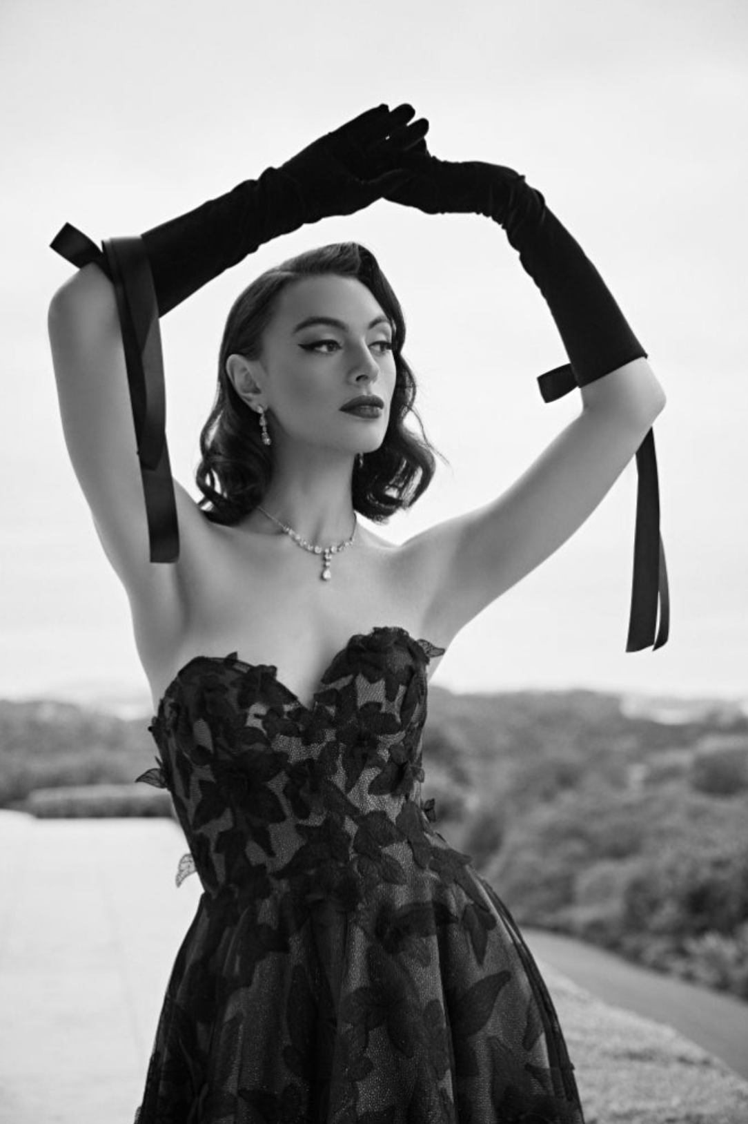 Georgi commands attention with its bold A-line silhouette that flatters and flows. Layered lace, glitter tulle, and organza create a striking textural composition that catches light and turns heads. The centre back zip ensures a seamless fit and effortless elegance. Perfect for those ready to make a statement and embrace their most daring self.