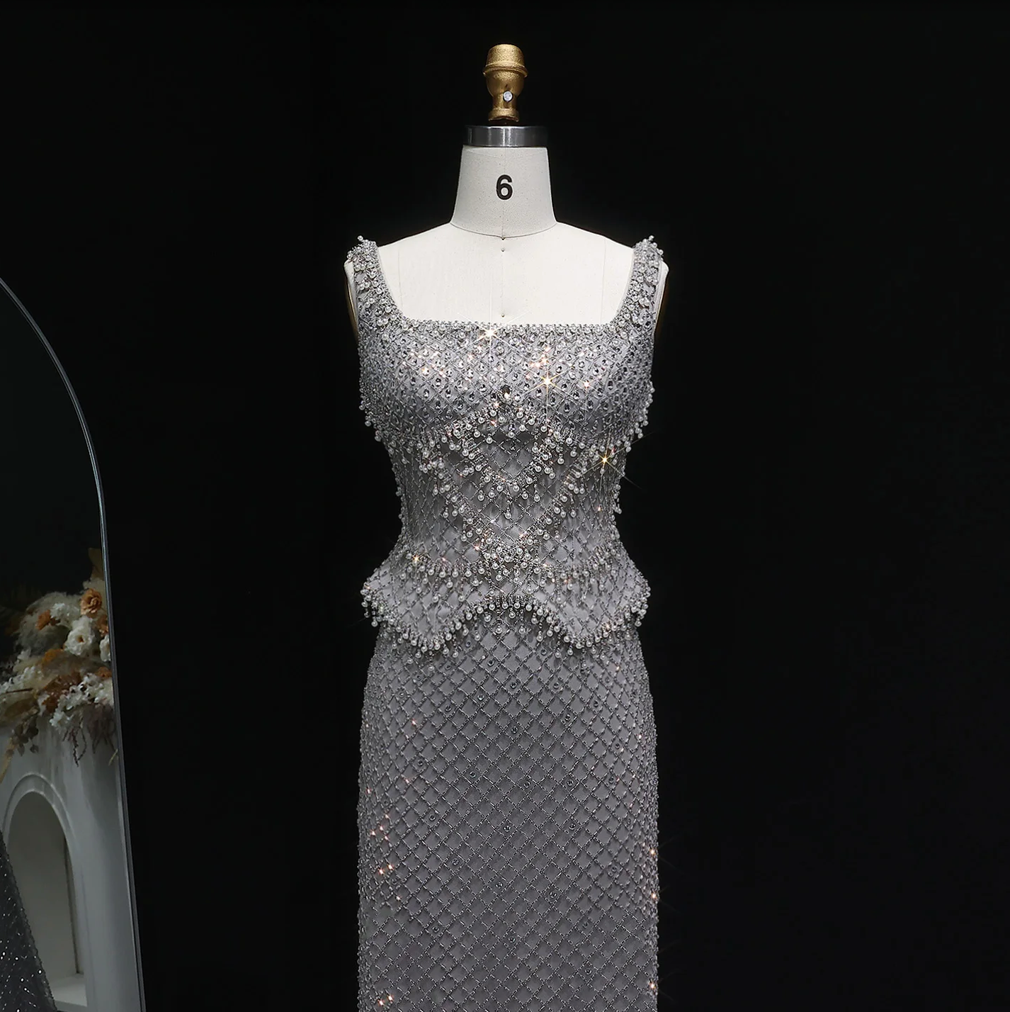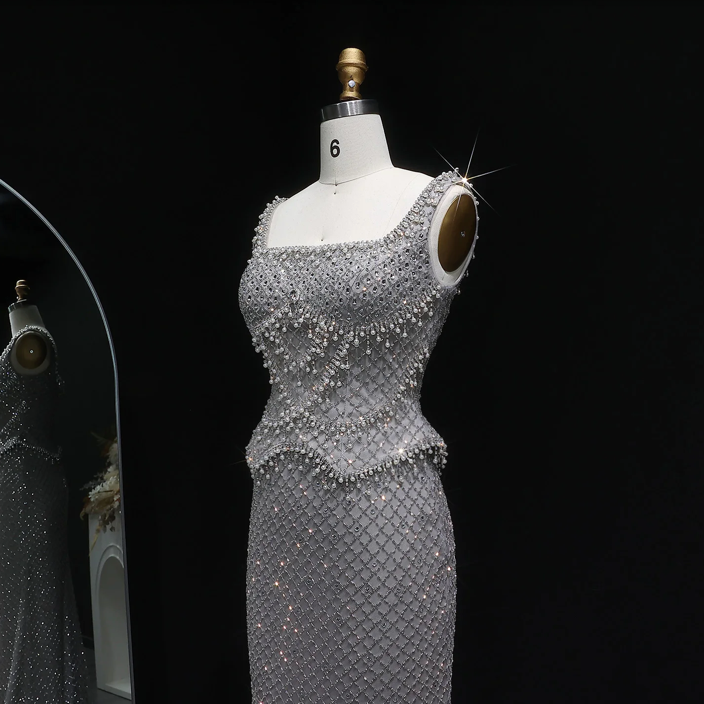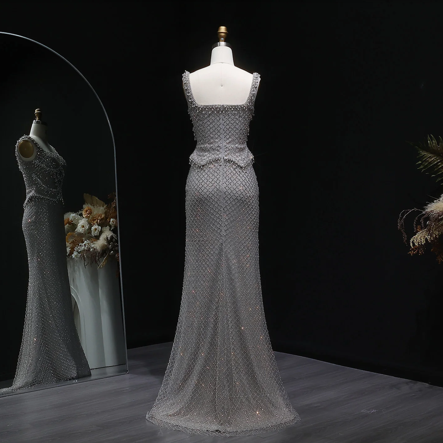 Step into bold elegance with the Ivar Gown, a floor-length masterpiece tailored for women who command attention. Featuring a daring square neckline and delicate straps, this mermaid-style trumpet gown hugs your silhouette before flaring out dramatically.