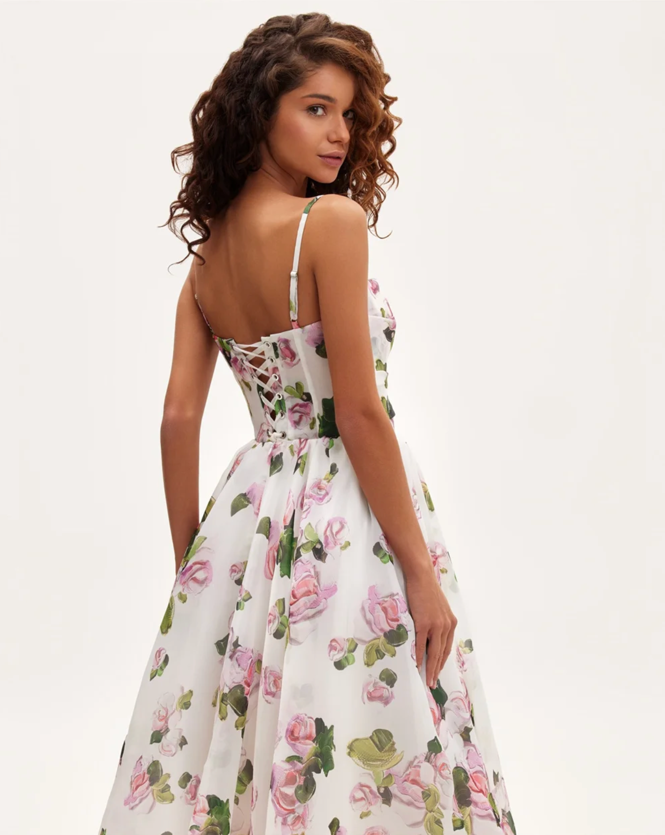 Dominate the evening in our Moana Midi – a seductive floral fantasy that refuses to blend into the background. The whisper-thin spaghetti straps tease what lies beneath, while the ball gown silhouette creates a paradox of innocence and provocation. Turn heads with the tantalizing lace-up back that invites lingering glances as you walk away.