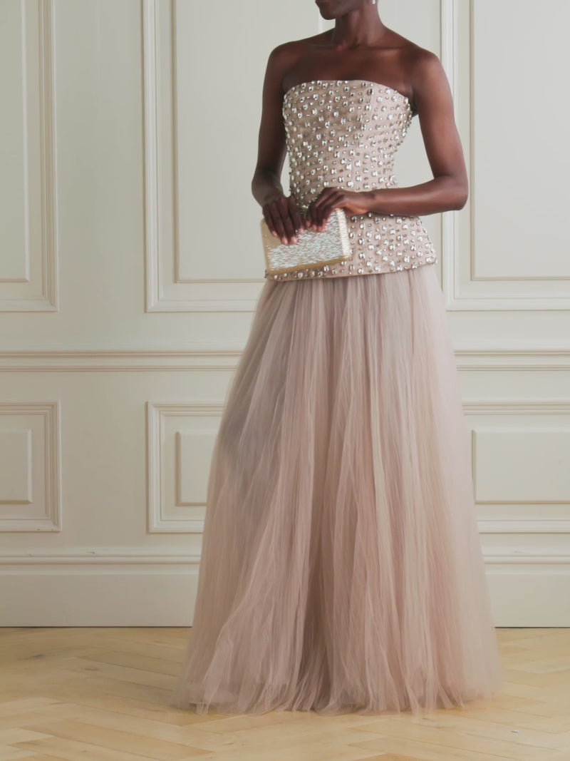 Command the room in the Putu Gede Gown, a fearless statement piece that refuses to be ignored. This audacious strapless creation features a provocative two-piece design that teases with calculated exposure, while its rebellious tulle skirt doesn't just sweep the floor—it conquers it. Defiant diamond embellishments don't merely catch light—they weaponize it, ensuring all eyes remain locked on your unapologetic presence at proms, galas, and elite soirées. Each gown can be daringly customized to your body's demands, creating a second-skin fit that's nothing short of scandalous. Crafted from illusion fabric, tulle, and acetate with a sleeveless A-line silhouette, bold beading, natural waistline, and floor-length profile—this isn't just modern, it's revolutionary.