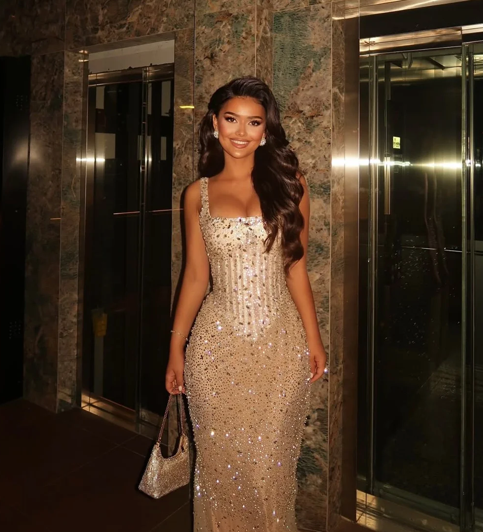 Dive into the spotlight with the Seely Maxi, a show-stopping evening gown that commands attention. This daring mermaid silhouette features a dramatic court train and a chic square collar. While thousands of shimmering sequins and intricate beading catch every light. Sleeveless and ankle-length, this vestido de noche blends sophisticated elegance with bold glamour—perfect for prom, galas, or any occasion where you're ready to make an unforgettable entrance.