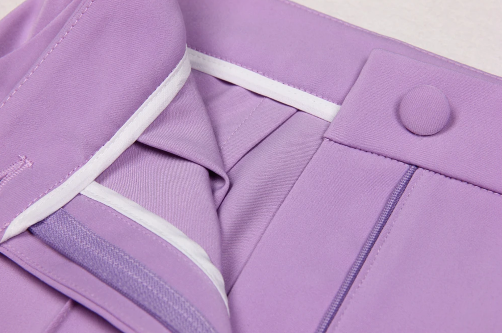 Stand out from the crowd in this provocatively elegant design that screams exclusivity. Crafted from Italian satin with double-breasted styling, a zipper fly, casual appeal, and full lining.