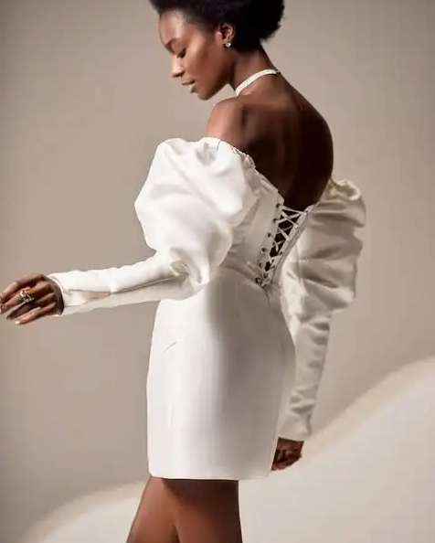 Step into the spotlight with the Zane Party Mini, a daring off-the-shoulder short dress designed to captivate. Crafted from luxe satin with a slight stretch, its A-line silhouette, paired with puff sleeves and a sweetheart neckline, creates a bold yet elegant statement perfect for engagement parties. Embrace confidence and charm in every move.